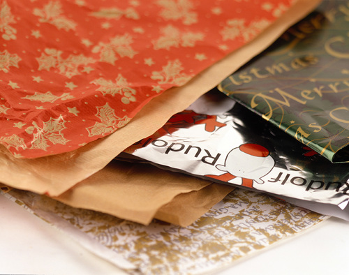 Blue BinPaper, foil, or plain plastic (without a shiny foil layer) wrappers can be put in your blue bin. Please save up small pieces of foil and scrunch into a larger ball to aid recycling.