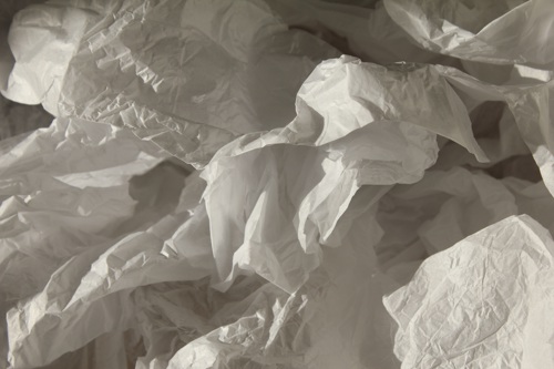 Tissue paper hats can not be recycled, but can be composted in the green bin.