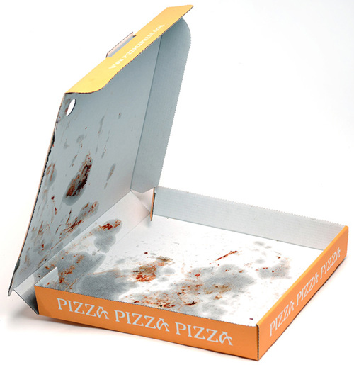 Green BinSmall quantities of wet or very greasy cardboard or paper (for example, from fish and chips or pizza) can be put in your green bin to be composted. If it is put in the blue bin it will break up and stick to other items, and will not be recycled.